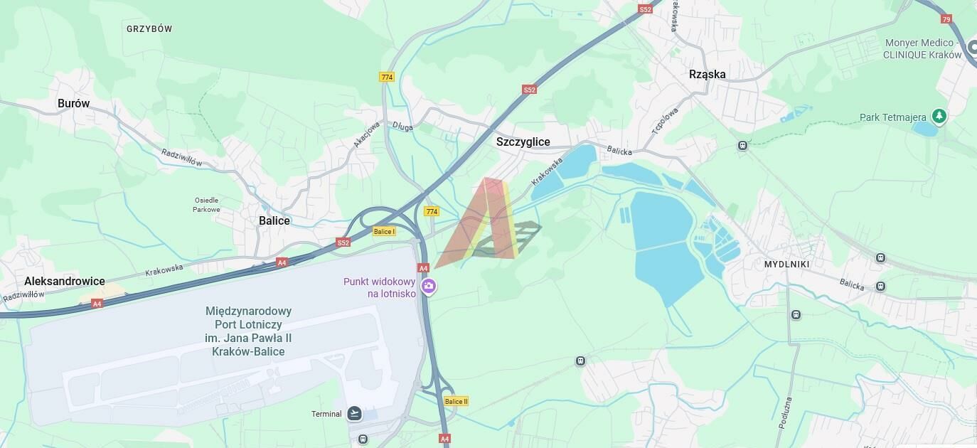 Działka w pobliżu lotniska Balice nie należy do żadnej ze stref obszaru ograniczonego użytkowania.