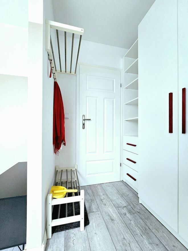 - Wieszak na odzież wierzchnią, regał na buty.