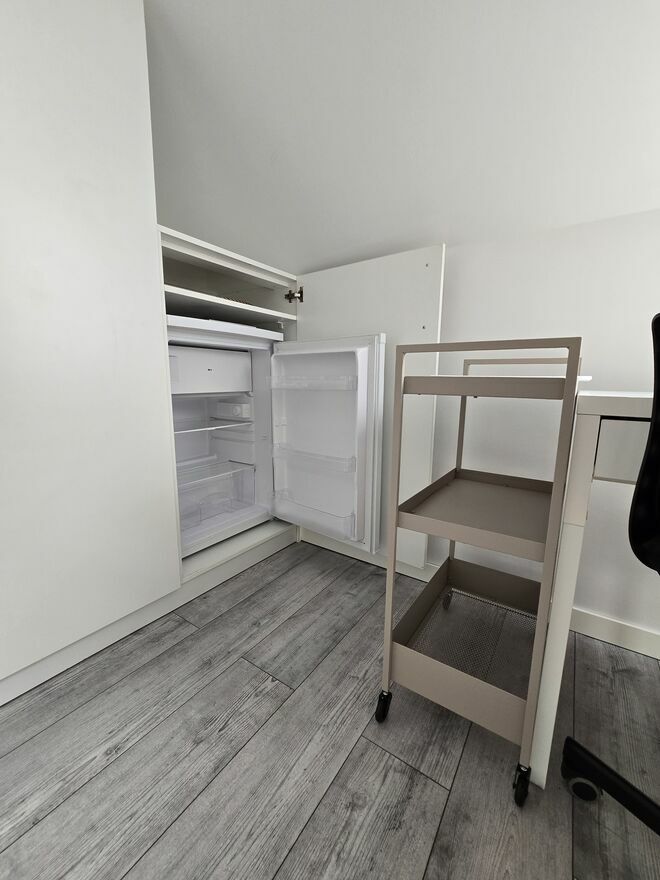 - Duża szafa, w której umieszczona została prywatna lodówka.